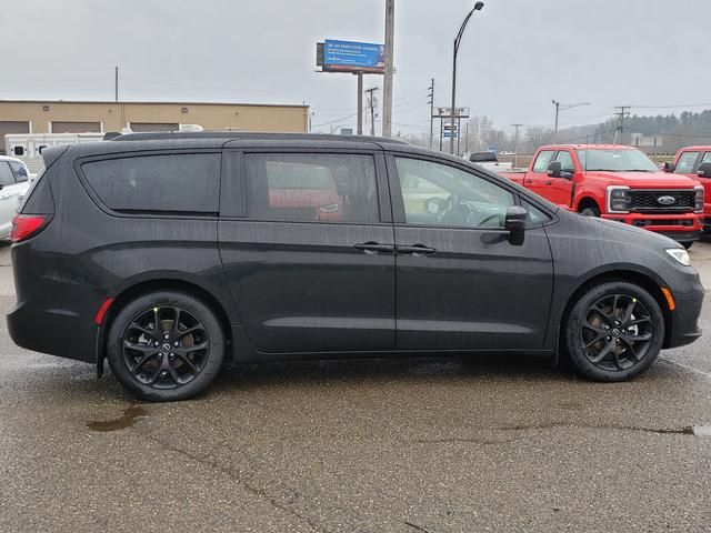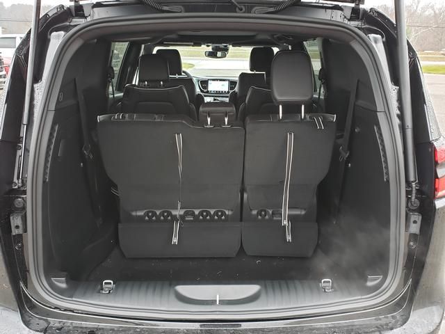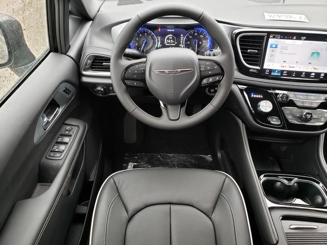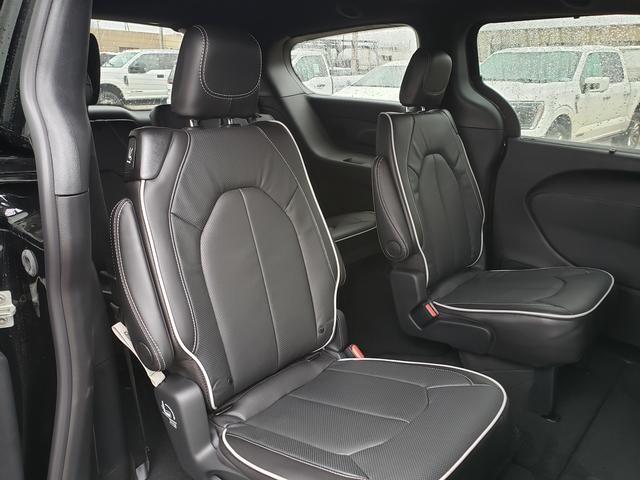 Diamond Black Crystal Pearlcoat 2026 Chrysler Pacifica Limited FWD 9-Speed 948TE Automatic 3.6L V6 24V VVT 13 Speakers, 18" x 7.5" Painted Aluminum Wheels, 3.25 Axle Ratio, 3rd row seats: split-bench, 4-Wheel Disc Brakes, ABS brakes, Air Conditioning, Alloy wheels, AM/FM radio: SiriusXM 360L, Anodized Ink Badging, Apple CarPlay/Android Auto, Audio memory, Auto-dimming Rear-View mirror, Automatic temperature control, Black Day Light Opening Moldings, Black Seats, Black Stow 'N Place Roof Rack, Brake assist, Bumpers: body-color, Compass, Delay-off headlights, Driver door bin, Driver vanity mirror, Driver's Seat Mounted Armrest, Dual front impact airbags, Dual front side impact airbags, Electronic Stability Control, Emergency communication system: Chrysler Connect, Four wheel independent suspension, Front anti-roll bar, Front Bucket Seats, Front dual zone A/C, Front fog lights, Front reading lights, Front Splash Guards, Fully automatic headlights, Garage door transmitter, Gloss Black Exterior Mirrors, Heated door mirrors, Heated front seats, Heated rear seats, Heated steering wheel, Illuminated entry, Integrated Active Noise Cancellation, Knee airbag, Low tire pressure warning, Memory seat, MOPAR Splash Guards - Vehicle Set, MyFlexCare Service Plan, Nappa Leather Bucket Seats, Nappa Leather Bucket Seats with S Logo, Navigation System, Occupant sensing airbag, Outside temperature display, Overhead airbag, Overhead console, Panic alarm, ParkView Rear Back-Up Camera, Passenger door bin, Passenger seat mounted armrest, Passenger vanity mirror, Power door mirrors, Power driver seat, Power Liftgate, Power moonroof, Power passenger seat, Power steering, Power windows, Premium Fascia Upper/Lower Grille with Black Surround, Premium Rear Fascia Black, Quick Order Package 27P, Radio data system, Radio: Uconnect 5 Nav with 10.1" Display, Rain sensing wipers, Rear air conditioning, Rear reading lights, Rear Splash Guards, Rear window defroster, Rear window wiper, Reclining 3rd row seat, Remote keyless entry, S Appearance Package, S Badge, Security system, Speed control, Split folding rear seat, Spoiler, Steering wheel mounted audio controls, Tachometer, Telescoping steering wheel, Tilt steering wheel, Touring Suspension, Traction control, Trip computer, Turn signal indicator mirrors, Variably intermittent wipers, Ventilated front seats, Voltmeter, Wheels: 20" x 7.5" S-Model Aluminum Design 1.