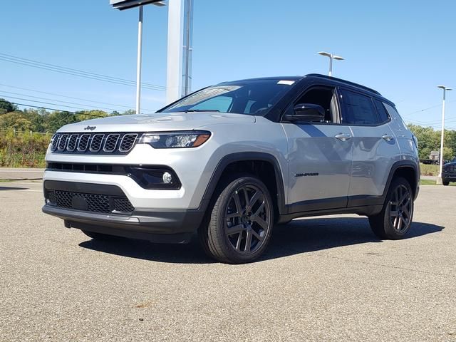 Silver Zynith Metallic Clearcoat 2026 Jeep Compass Limited 4WD 8-Speed Automatic 2.0L I4 DOHC 10.1" Touchscreen Display, 3.73 Final Drive Ratio, 4-Wheel Disc Brakes, 4G LTE Wi-Fi Hot Spot, 6 Speakers, ABS brakes, Air Conditioning, Alloy wheels, AM/FM radio: SiriusXM, Auto High-beam Headlights, Auto-dimming Rear-View mirror, Automatic temperature control, Black Day Light Opening Moldings, Brake assist, Bumpers: body-color, Compass, Delay-off headlights, Driver door bin, Driver vanity mirror, Dual front impact airbags, Dual front side impact airbags, Electronic Stability Control, Emergency communication system: SiriusXM Guardian, Four wheel independent suspension, Front anti-roll bar, Front Bucket Seats, Front Center Armrest w/Storage, Front dual zone A/C, Front fog lights, Front License Plate Bracket, Front reading lights, Fully automatic headlights, Global Telematics Box Module, Gloss Black Surround/Neutral Gray Rings, Heated door mirrors, Heated front seats, Heated steering wheel, Illuminated entry, Knee airbag, Leather Shift Knob, Leather steering wheel, Leatherette Seats, Limited Altitude Pack, Low tire pressure warning, MOPAR All Weather Package, MOPAR All-Weather Floor Mats, MOPAR Molded Cargo Tray, MyFlexCare Service Plan, Neutral Gray Exterior Accents, Neutral Gray Exterior Badging, Occupant sensing airbag, Outside temperature display, Overhead airbag, Overhead console, Panic alarm, ParkView Rear Back-Up Camera, Passenger door bin, Passenger vanity mirror, Piano Black Interior Accents, Power door mirrors, Power driver seat, Power Liftgate, Power steering, Power windows, Premium audio system: UConnect 5, Quick Order Package 29W Limited Altitude, Radio: Uconnect 5 with 10.1" Display, Rain sensing wipers, Rear anti-roll bar, Rear seat center armrest, Rear window defroster, Rear window wiper, Remote keyless entry, Security system, SiriusXM Guardian - Included Trail (B), SiriusXM Radio Service, Speed control, Split folding rear seat, Spoiler, Steering wheel mounted audio controls, Tachometer, Telescoping steering wheel, Tilt steering wheel, Traction control, Trip computer, Turn signal indicator mirrors, Variably intermittent wipers, Wheels: 18" x 7" Painted Diamond Cut Aluminum, Wheels: 19" x 7.5" Aluminum Painted.