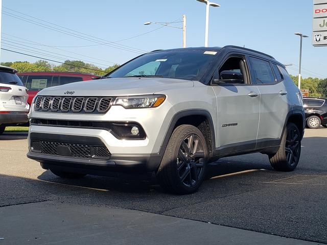 Silver Zynith Metallic Clearcoat 2026 Jeep Compass Limited 4WD 8-Speed Automatic 2.0L I4 DOHC 10.1" Touchscreen Display, 3.73 Final Drive Ratio, 4-Wheel Disc Brakes, 4G LTE Wi-Fi Hot Spot, 6 Speakers, ABS brakes, Air Conditioning, Alloy wheels, AM/FM radio: SiriusXM, Auto High-beam Headlights, Auto-dimming Rear-View mirror, Automatic temperature control, Black Day Light Opening Moldings, Brake assist, Bumpers: body-color, Compass, Delay-off headlights, Driver door bin, Driver vanity mirror, Dual front impact airbags, Dual front side impact airbags, Electronic Stability Control, Emergency communication system: SiriusXM Guardian, Four wheel independent suspension, Front anti-roll bar, Front Bucket Seats, Front Center Armrest w/Storage, Front dual zone A/C, Front fog lights, Front License Plate Bracket, Front reading lights, Fully automatic headlights, Global Telematics Box Module, Gloss Black Surround/Neutral Gray Rings, Heated door mirrors, Heated front seats, Heated steering wheel, Illuminated entry, Knee airbag, Leather Shift Knob, Leather steering wheel, Leatherette Seats, Limited Altitude Pack, Low tire pressure warning, MOPAR All Weather Package, MOPAR All-Weather Floor Mats, MOPAR Molded Cargo Tray, MyFlexCare Service Plan, Neutral Gray Exterior Accents, Neutral Gray Exterior Badging, Occupant sensing airbag, Outside temperature display, Overhead airbag, Overhead console, Panic alarm, ParkView Rear Back-Up Camera, Passenger door bin, Passenger vanity mirror, Piano Black Interior Accents, Power door mirrors, Power driver seat, Power Liftgate, Power steering, Power windows, Premium audio system: UConnect 5, Quick Order Package 29W Limited Altitude, Radio: Uconnect 5 with 10.1" Display, Rain sensing wipers, Rear anti-roll bar, Rear seat center armrest, Rear window defroster, Rear window wiper, Remote keyless entry, Security system, SiriusXM Guardian - Included Trail (B), SiriusXM Radio Service, Speed control, Split folding rear seat, Spoiler, Steering wheel mounted audio controls, Tachometer, Telescoping steering wheel, Tilt steering wheel, Traction control, Trip computer, Turn signal indicator mirrors, Variably intermittent wipers, Wheels: 18" x 7" Painted Diamond Cut Aluminum, Wheels: 19" x 7.5" Aluminum Painted.