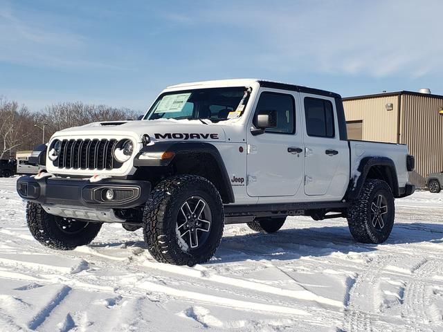 bright white clearcoat 2026 Jeep Gladiator Mojave 4WD 8-Speed Automatic 3.6L V6 24V VVT 110 Mph Vehicle Max Speed Calibration, 12.3" Touchscreen Display, 4-Wheel Disc Brakes, 4.10 Rear Axle Ratio, 4G LTE Wi-Fi Hot Spot, 8 Speakers, ABS brakes, Air Conditioning, Alexa Built-in, Alloy wheels, AM/FM radio: SiriusXM with 360L, Apple CarPlay, Apple CarPlay/Android Auto, Automatic temperature control, Black 3-Piece Hard Top, Brake assist, Compass, Connectivity - US/Canada, Convenience Group, Delay-off headlights, Driver door bin, Driver vanity mirror, Dual front impact airbags, Dual front side impact airbags, Electronic Stability Control, Emergency communication system: Jeep Connect, For Details, Visit DriveUconnect.com, Freedom Panel Storage Bag, Front anti-roll bar, Front Bucket Seats, Front Center Armrest w/Storage, Front dual zone A/C, Front fog lights, Front License Plate Bracket, Front reading lights, Fully automatic headlights, Google Android Auto, Heated door mirrors, Heated Front Seats, Heated Steering Wheel, Heavy Duty Suspension with Gas Shocks, Illuminated entry, Integrated Center Stack Radio, Integrated roll-over protection, Low tire pressure warning, Manufacturer's Statement of Origin, MOPAR All-Weather Slush Mats, MOPAR Spray in Bedliner, MyFlexCare Service Plan, Occupant sensing airbag, Outside temperature display, Overhead airbag, Panic alarm, Passenger door bin, Passenger vanity mirror, Power door mirrors, Power steering, Power windows, Premium Cloth Seats with Sport Bolsters, Quick Order Package 24D Mojave, Radio data system, Radio: Uconnect 5 with 12.3" Display, Rear anti-roll bar, Rear reading lights, Rear Sliding Window, Rear Window Defroster, Remote keyless entry, Remote Start System, Security system, SiriusXM Radio Service, SiriusXM with 360L, Speed control, Split folding rear seat, Steering wheel mounted audio controls, Tachometer, Telescoping steering wheel, Tilt steering wheel, Traction control, Trip computer, Universal Garage Door Opener, USB Host Flip, Variably intermittent wipers, Voltmeter, Wheels: 17" x 7.5" Dark Gray Painted. Price includes: $1000 - 2026 National Retail Bonus Cash . Exp. 03/31/2026 $750 - 2026 Great Lakes BC Bonus Cash . Exp. 03/31/2026