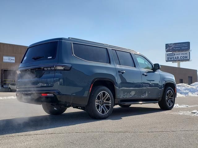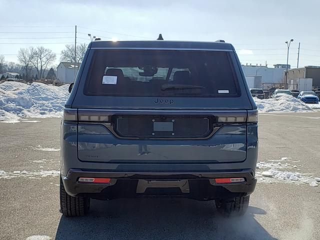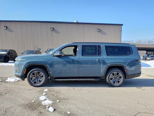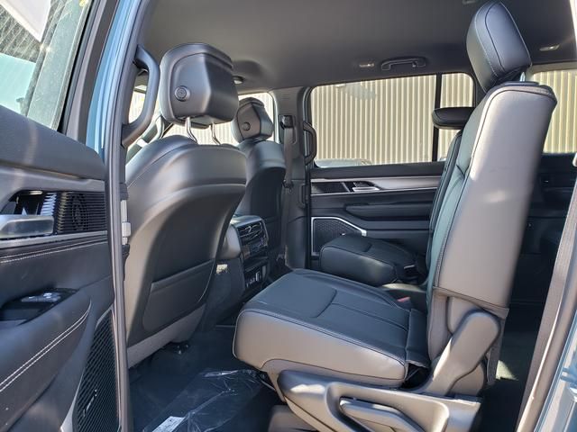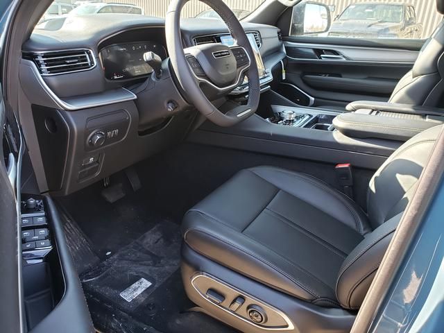 Steel Blue 2026 Jeep Grand Wagoneer L 4WD 8-Speed Automatic 3.0L I6 118 MPH Maximum Speed Calibration, 3rd row seats: bench, 4-Wheel Disc Brakes, 9 Speakers, ABS brakes, Adjustable Roof Rail Crossbars, Air Conditioning, All-Season Floor Mats, Alloy wheels, AM/FM radio: SiriusXM with 360L, Anti-whiplash front head restraints, Apple CarPlay/Android Auto, Audio memory, Auto Adjust in Reverse Exterior Mirrors, Auto High-beam Headlights, Auto-dimming door mirrors, Auto-Dimming Exterior Driver Mirror, Auto-dimming Rear-View mirror, Auto-leveling suspension, Automatic temperature control, Black Exterior Accents, Blind Spot with Trailer Detection, Brake assist, Bumpers: body-color, Cargo Tray, Compass, Delay-off headlights, Driver door bin, Driver vanity mirror, Driver's Seat Mounted Armrest, Dual front impact airbags, Dual front side impact airbags, Elec Rear Limited Slip Differential, Electronic Stability Control, Emergency communication system: Jeep Connect, Exterior Mirrors Approach Lamps, Exterior Mirrors with Memory, Exterior Mirrors with Supplemental Signals, Exterior Parking Camera Rear, Four wheel independent suspension, Front anti-roll bar, Front Bucket Seats, Front Center Armrest w/Storage, Front dual zone A/C, Front fog lights, Front reading lights, Fully automatic headlights, Garage door transmitter, HD Trailer Tow Package, Heated door mirrors, Heated Exterior Mirrors, Heated front seats, Heated steering wheel, Illuminated entry, Knee airbag, Low tire pressure warning, Memory seat, MOPAR Interior Protection Package, MyFlexCare Service Plan, Navigation System, Normal Duty Suspension, Occupant sensing airbag, Outside temperature display, Overhead airbag, Overhead console, Panic alarm, Passenger door bin, Passenger seat mounted armrest, Passenger vanity mirror, Power door mirrors, Power driver seat, Power Liftgate, Power passenger seat, Power steering, Power windows, Quick Order Package 29E Grand Wagoneer, Radio data system, Radio: Uconnect 5 Nav with 12" Display, Rain sensing wipers, Rear air conditioning, Rear anti-roll bar, Rear reading lights, Rear seat center armrest, Rear window defroster, Rear window wiper, Reclining 3rd row seat, Remote keyless entry, Removable Rear Tow Hooks, Security system, Selec-Speed Control, Speed control, Speed-sensing steering, Speed-Sensitive Wipers, Split folding rear seat, Steering wheel memory, Steering wheel mounted audio controls, Tachometer, Telescoping steering wheel, Tilt steering wheel, Traction control, Trailer Brake Control, Trailer Hitch Zoom, Trailer Light Monitoring, Trailer Tire Pressure Monitoring System, Trip computer, Turn signal indicator mirrors, Vapor Tow Hooks, Variably intermittent wipers, Ventilated front seats, Voltmeter, Wheels: 20" x 9.0" Machine Face Painted Aluminum.
